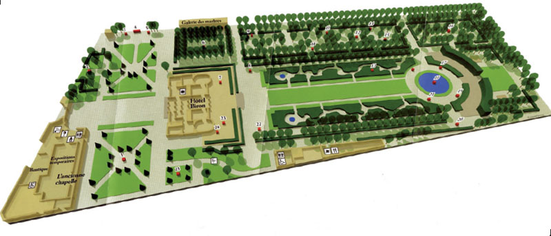 Уголок за зеленой стеной в конце сада – пожалуй, самое любимое место гостей и посетителей. Здесь, в тени высоких деревьев, среди скульптур великого мастера для усталой публики установлены шезлонги и широкие деревянные скамейки для отдыха. В заключение хотелось бы сказать: сад олицетворяет собой несколько эпох истории искусства паркостроения и даже истории самой Франции, что делает этот маленький парижский уголок бесценным сокровищем для всего ландшафтного искусства...»