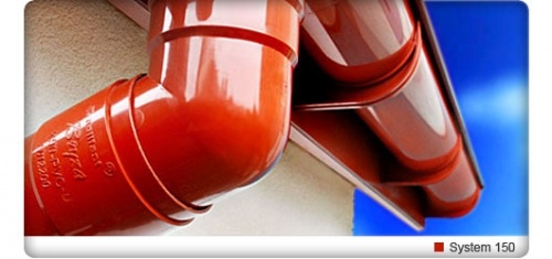 Крупные объекты жилищного, промышленного и коммерческого назначения — применяется система 150. Система включает в себя  желоб 150 мм с водосточной трубой 110мм.